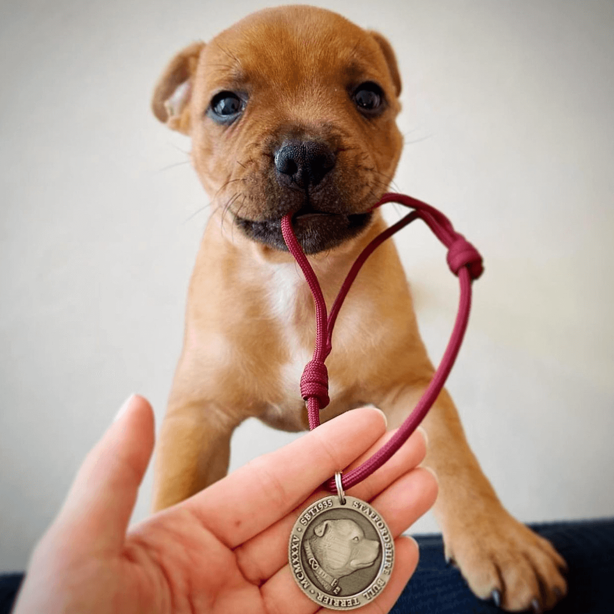 Staffordshire Bull Terrier 1935® Médaille avec Corde Chiot - Laiton ou Argent Ancien