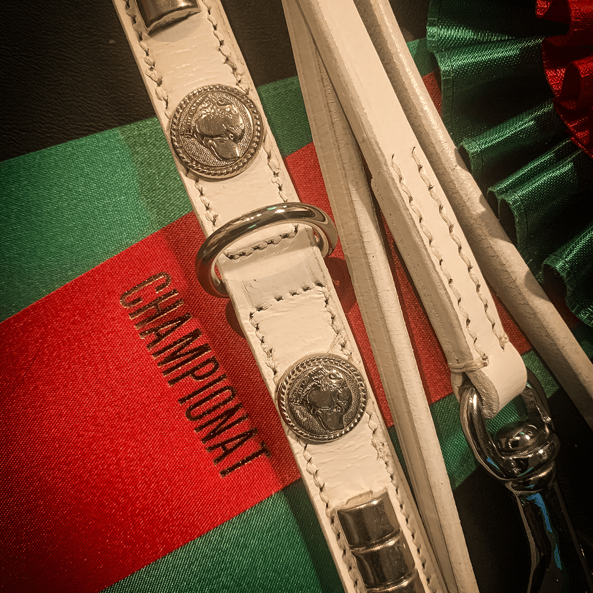 Staffordshire Bull Terrier 1935® Collier et laisse d'exposition - Champion - Blanc et Argent