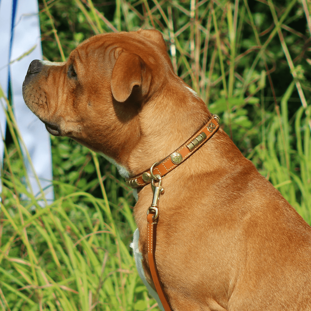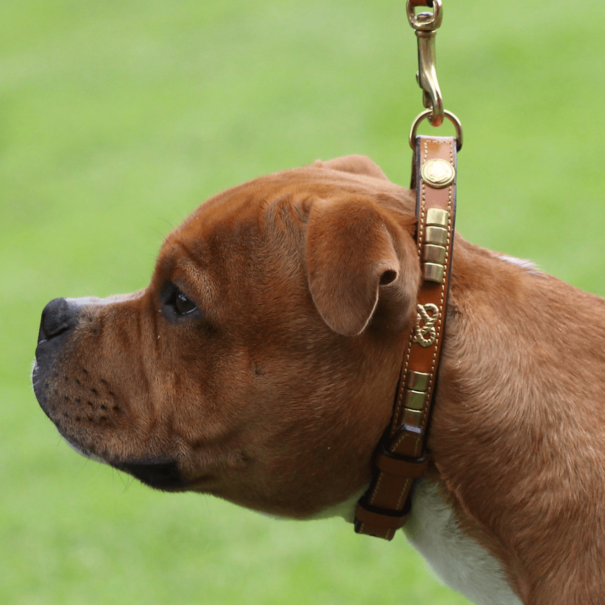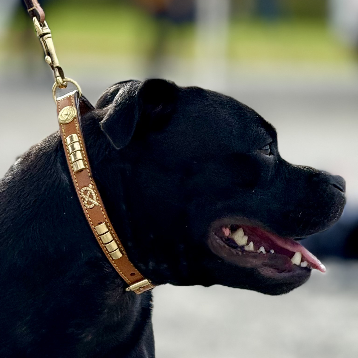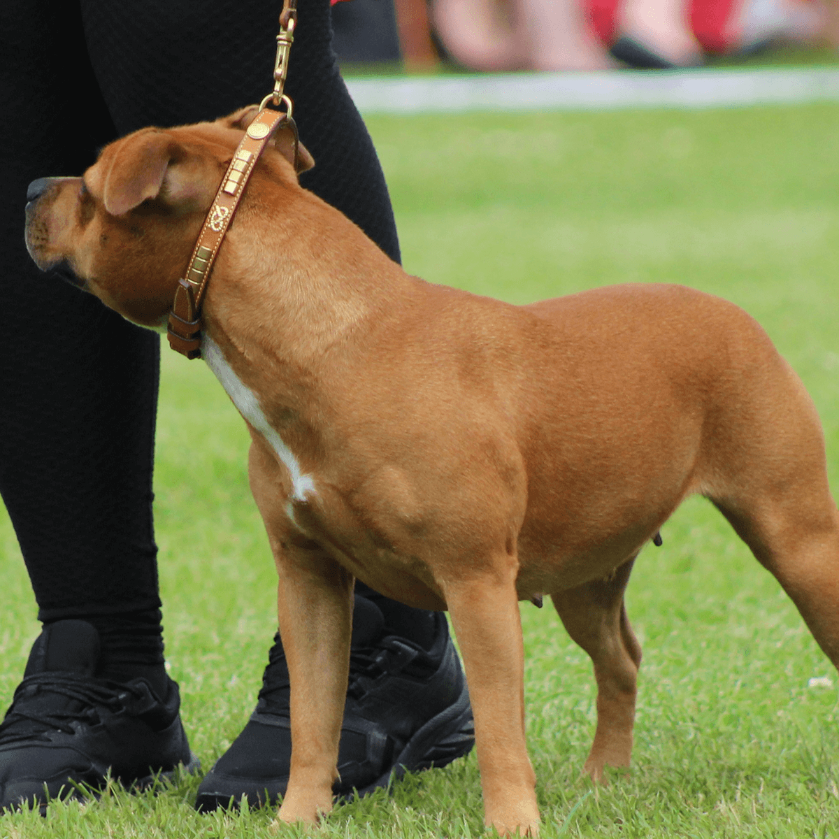 Staffordshire Bull Terrier 1935® Collier et laisse d'exposition - Champion - Cognac et Or