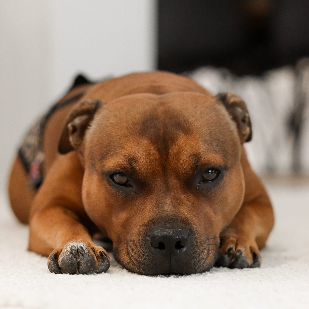 - Soft Jersey Fabric that’s gentle on your staffy’s skin
