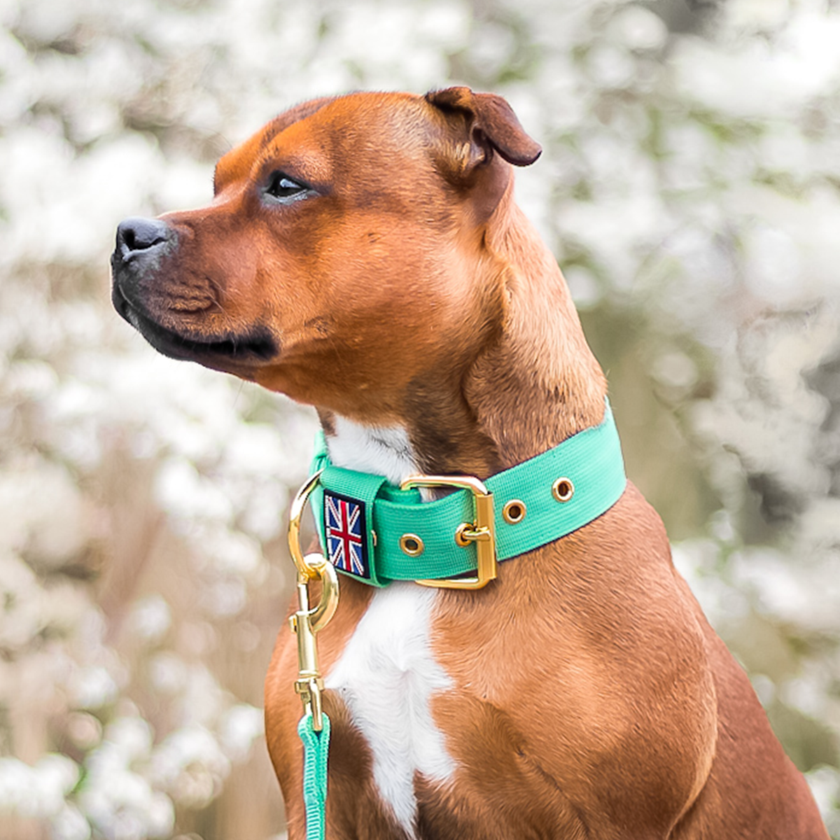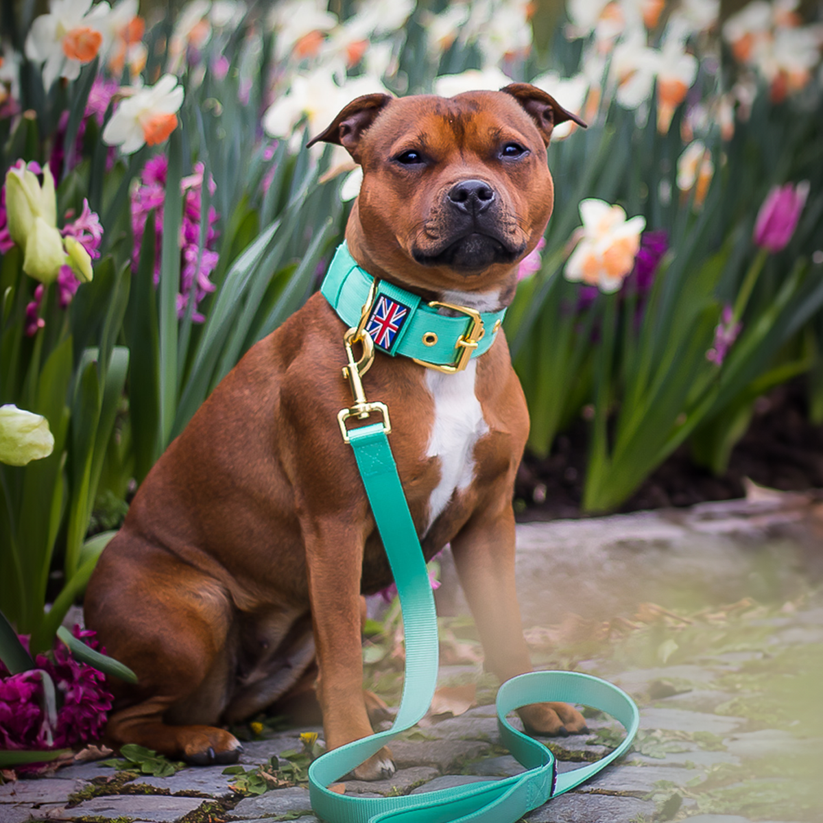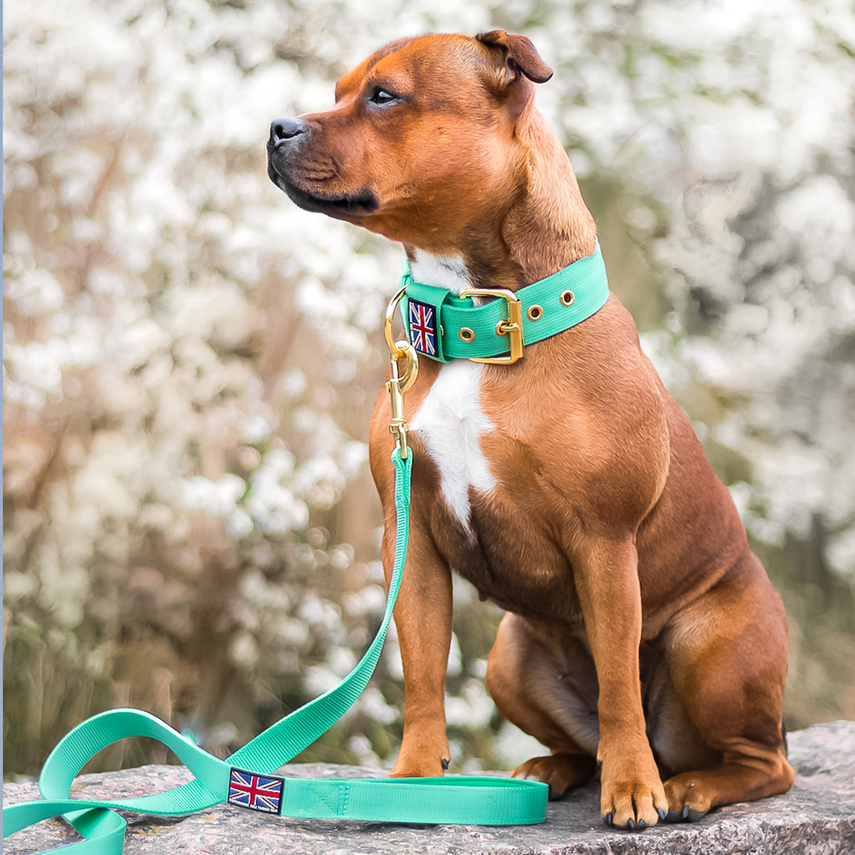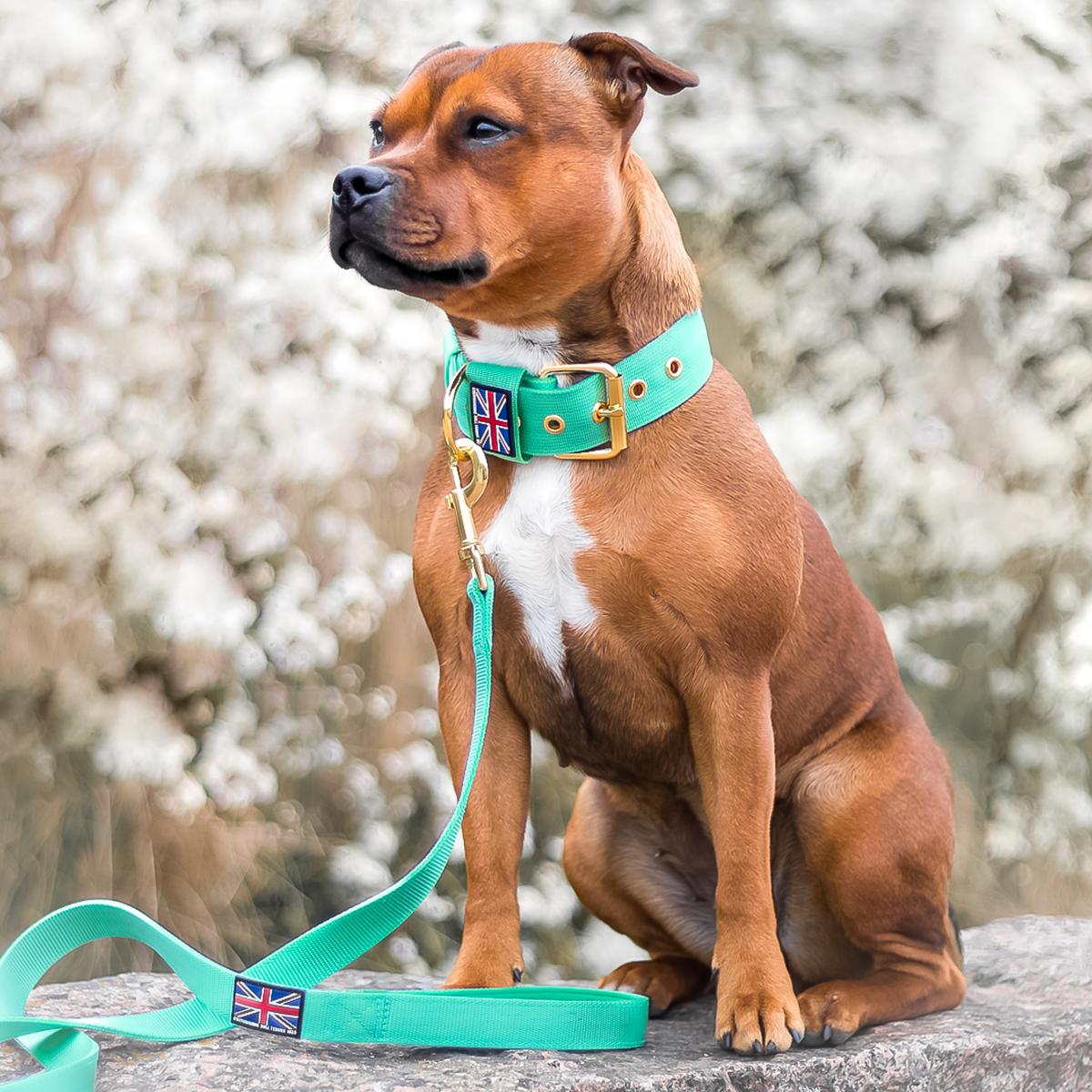 A: For a complete set, it’s recommended to combine the collar with our Staffy Nylon Leash.