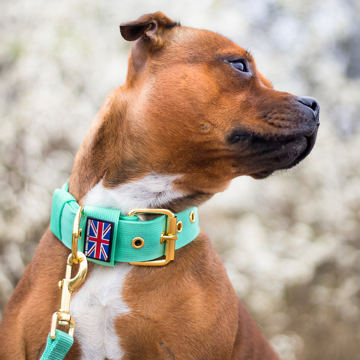 Staffordshire Bull Terrier 1935® Nylon Collar - Ayla Staffany Edition - Turquoise & Gold