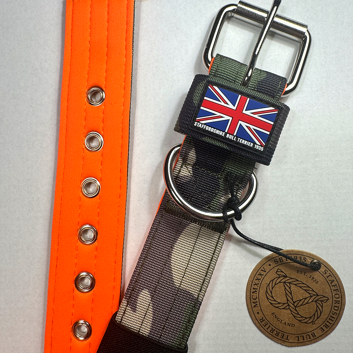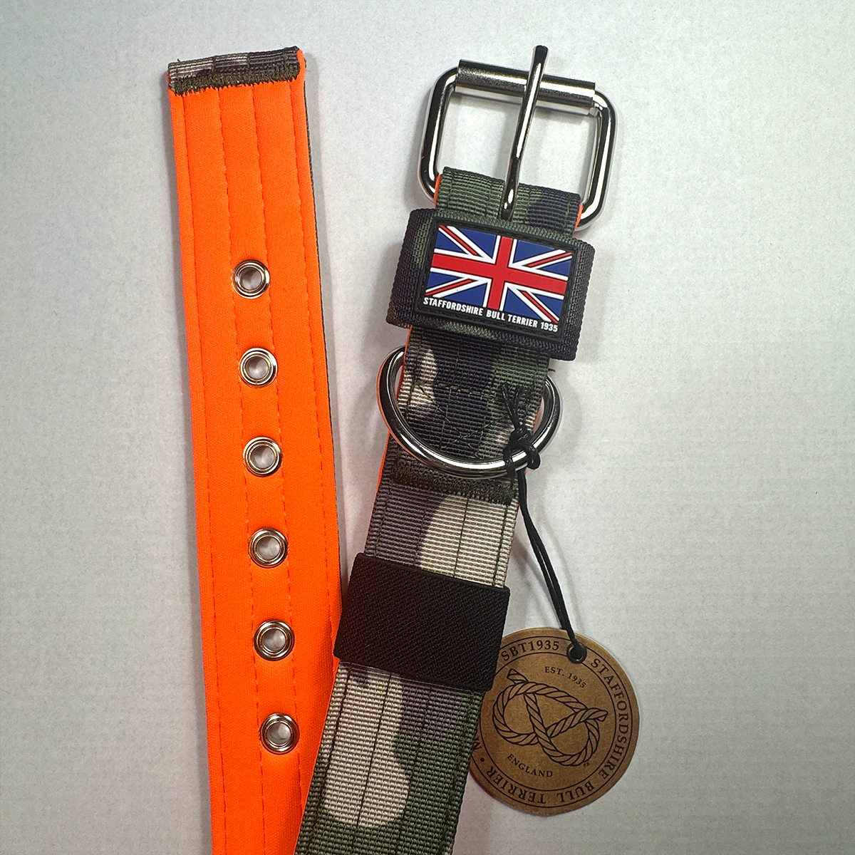Staffordshire Bull Terrier 1935® Nylon Collar - Classic Camo & Neon Orange