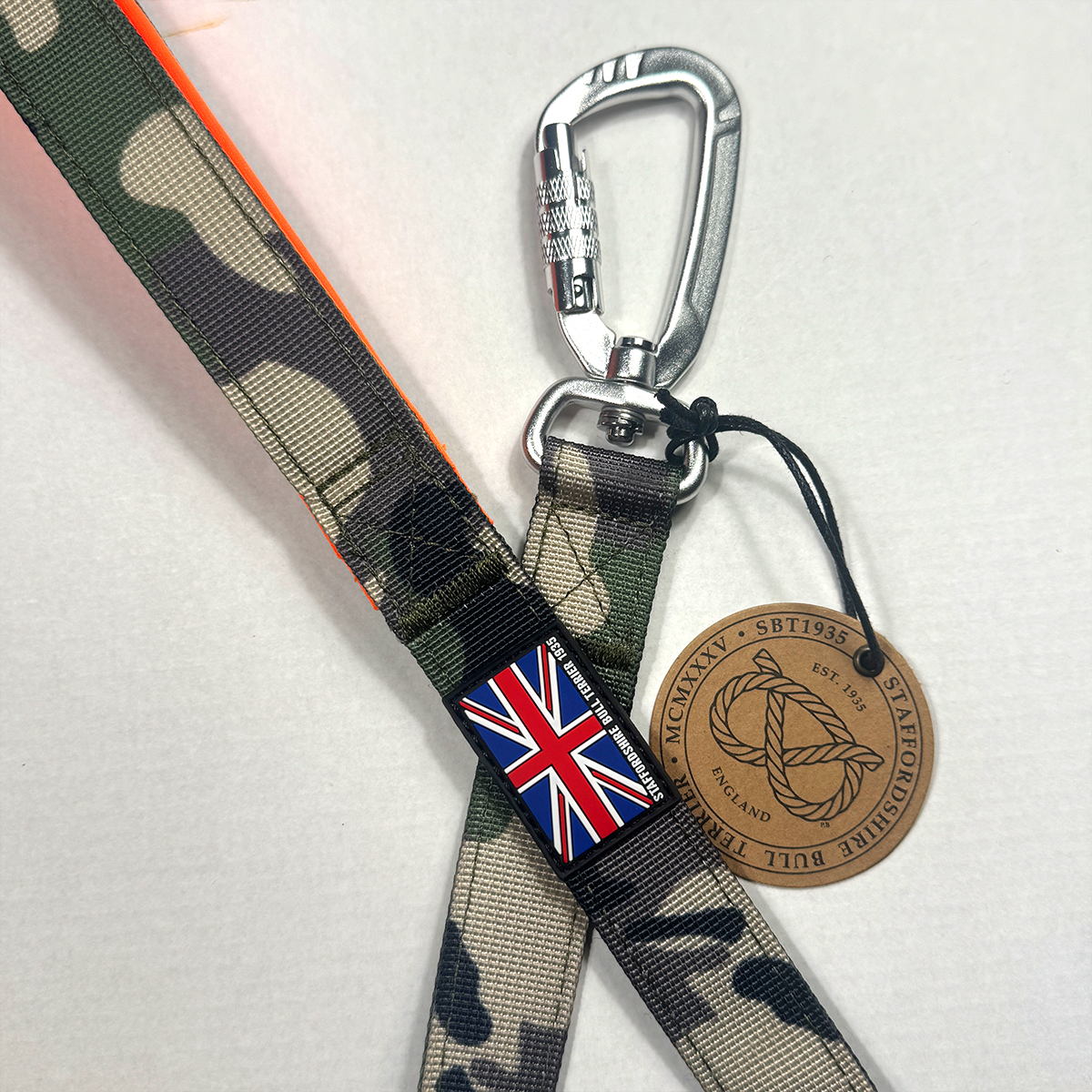 Staffordshire Bull Terrier 1935® Nylon Leash - Classic Camo & Neon Orange - Carabiner
