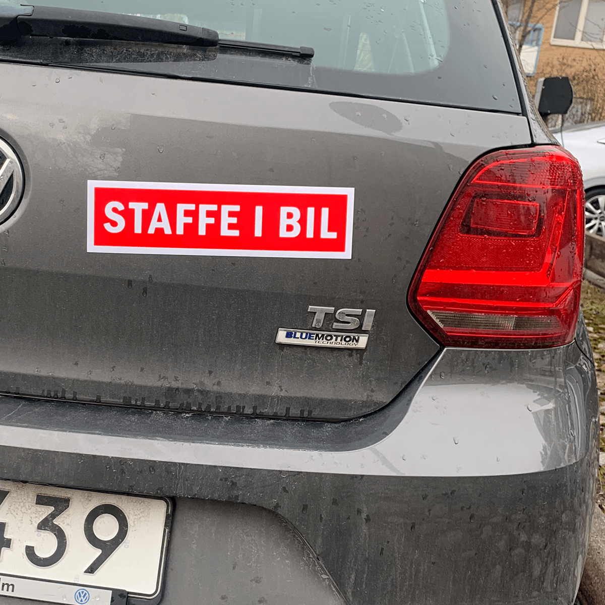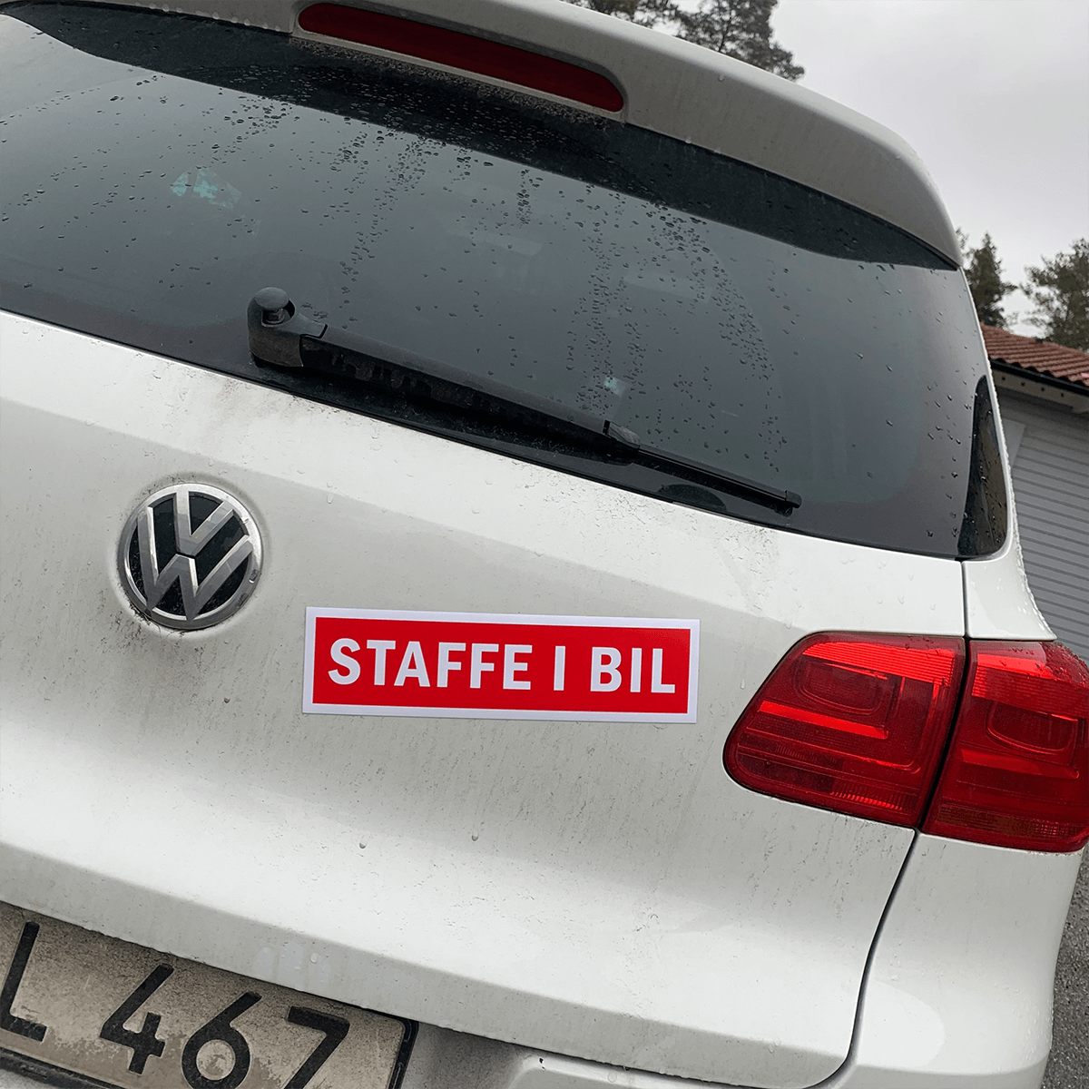 Q: Where can I purchase the "STAFFE I BIL" Car Decal?