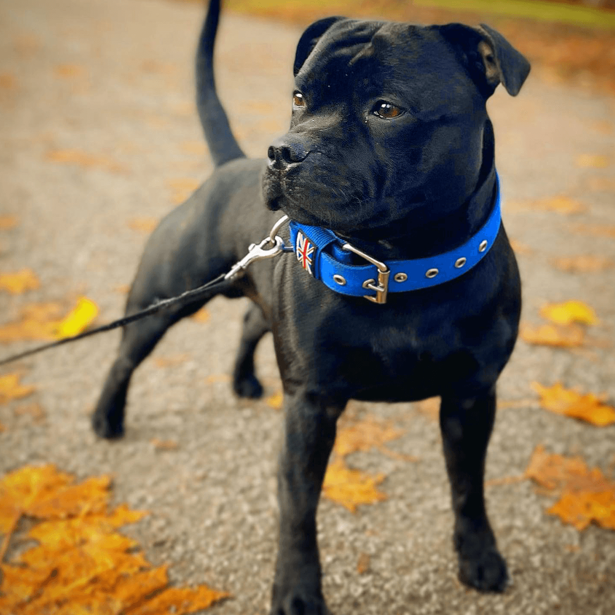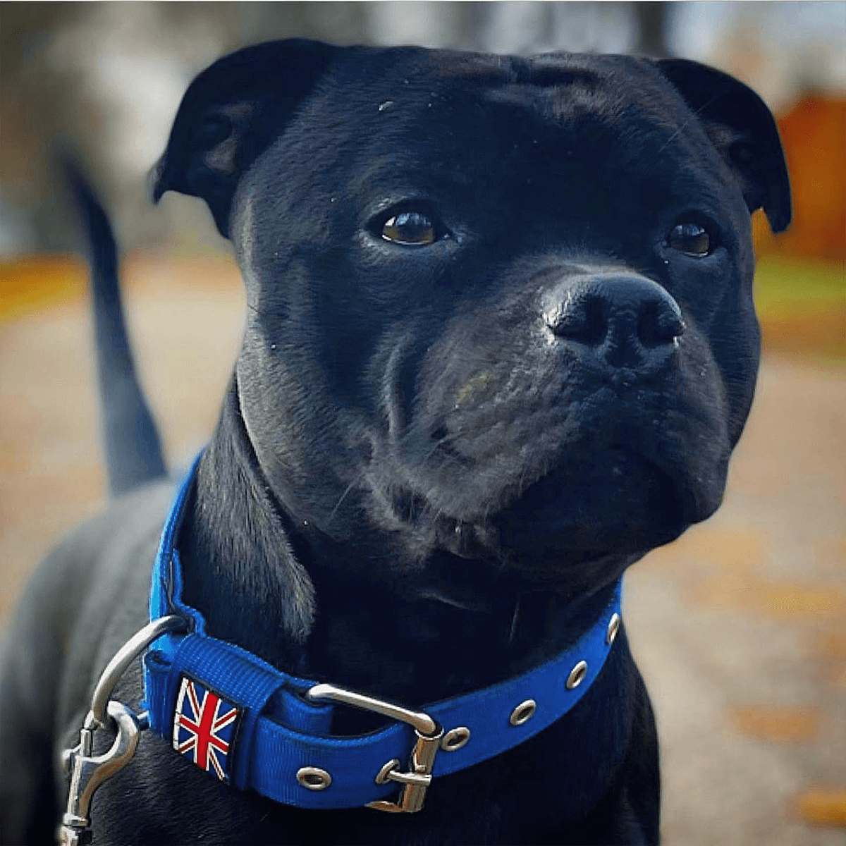 Our Staffordshire Bull Terrier Nylon Collars are meticulously designed, taking into account the unique size and strength of these powerful staffy dogs. Sizes are custom-made to ensure an optimal fit for your Staffy.