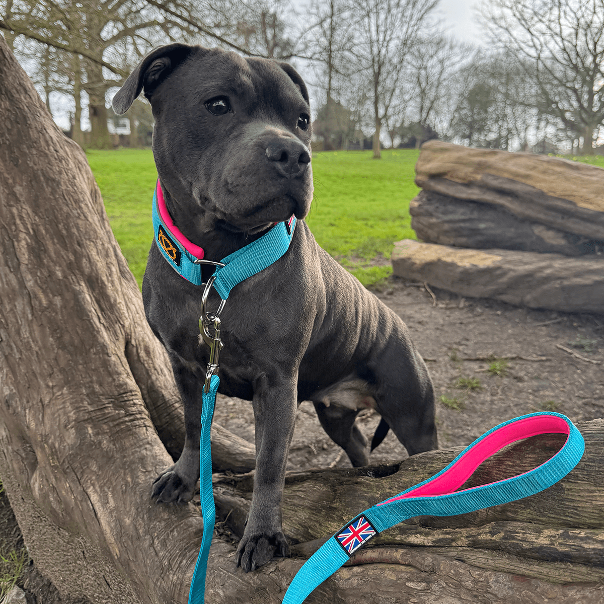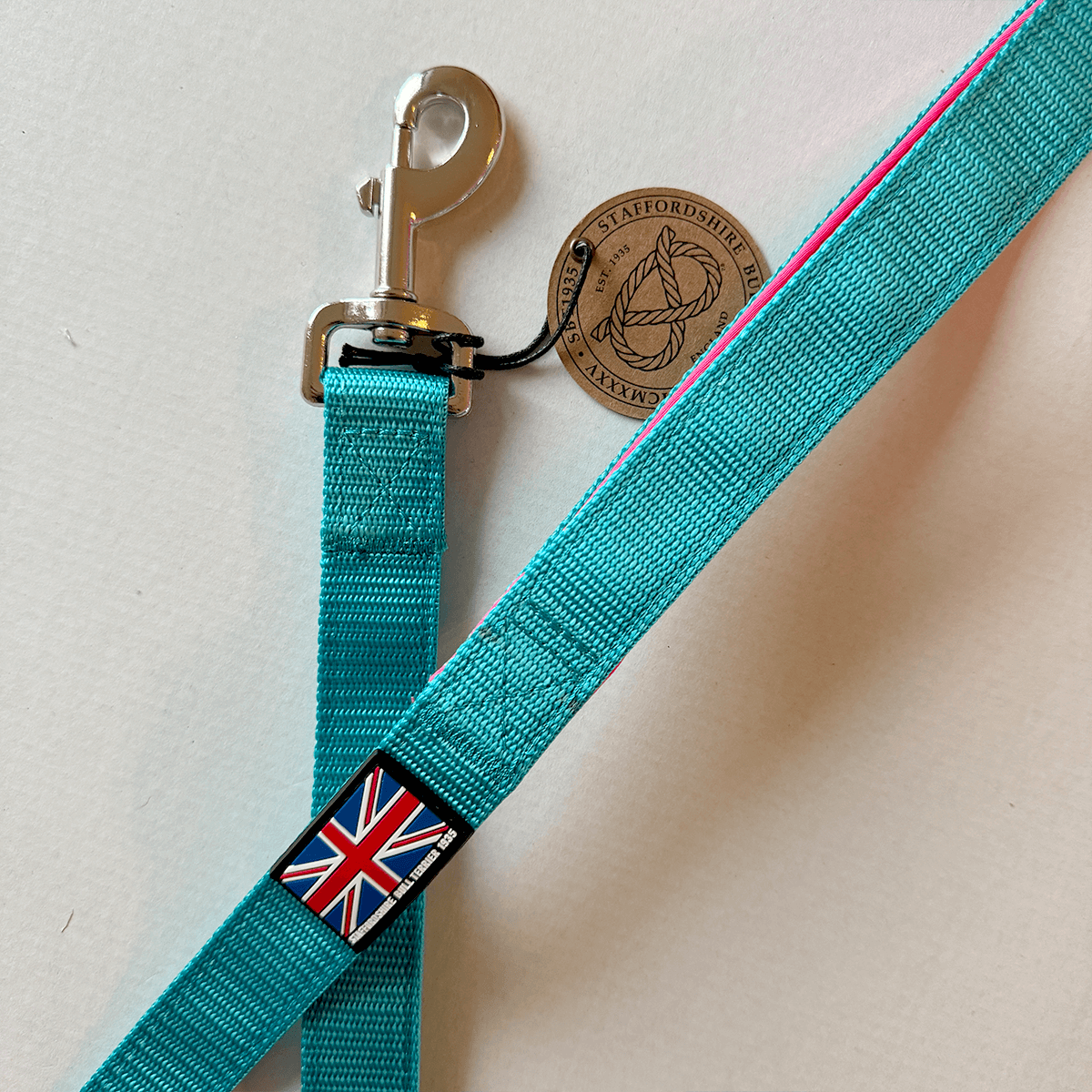 Staffordshire Bull Terrier 1935® Nylon Leash - Harley's Miami Edition - Aqua & Neon Pink - Normal