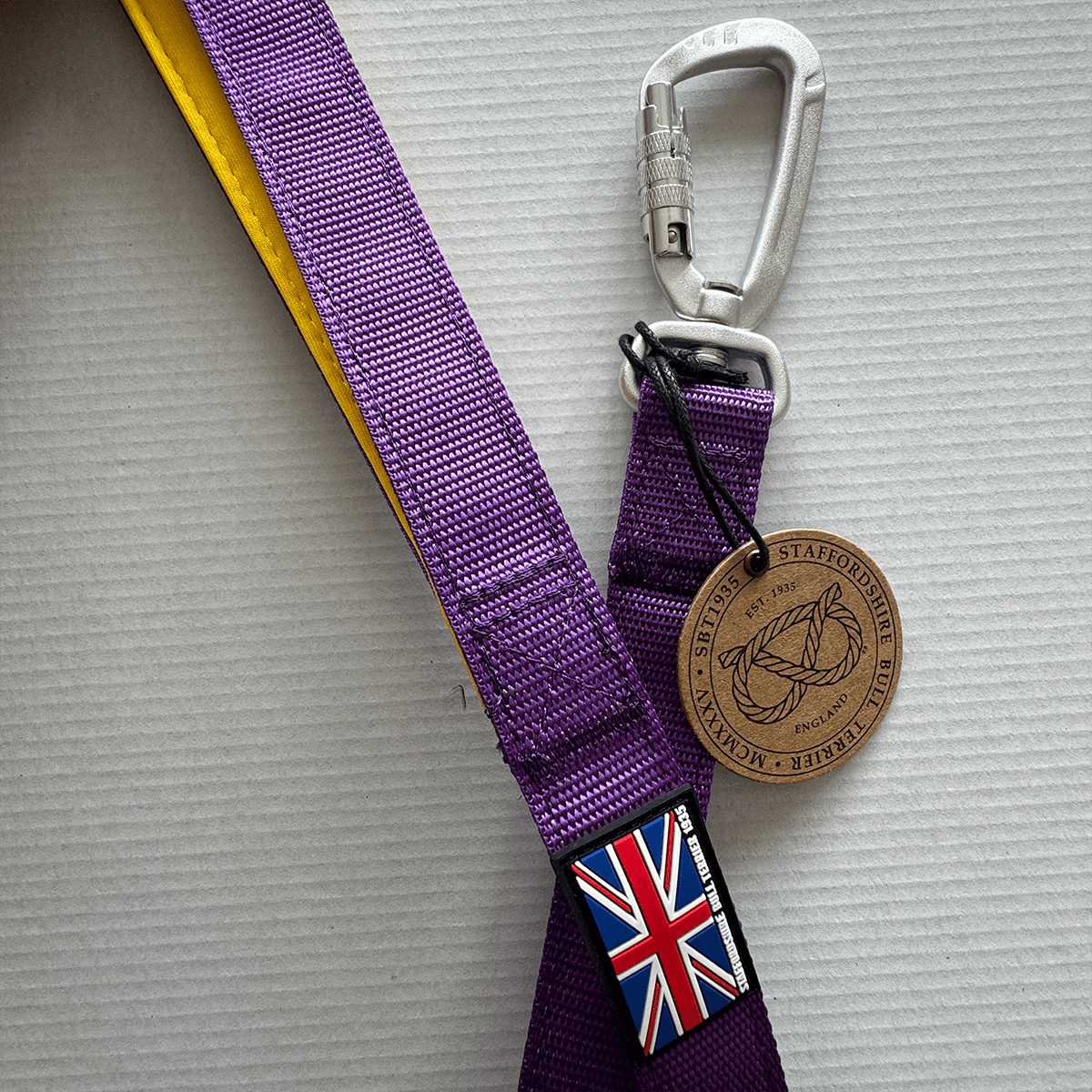 Staffordshire Bull Terrier 1935® Nylon Leash - LA Edition - Purple & Yellow - Carabiner