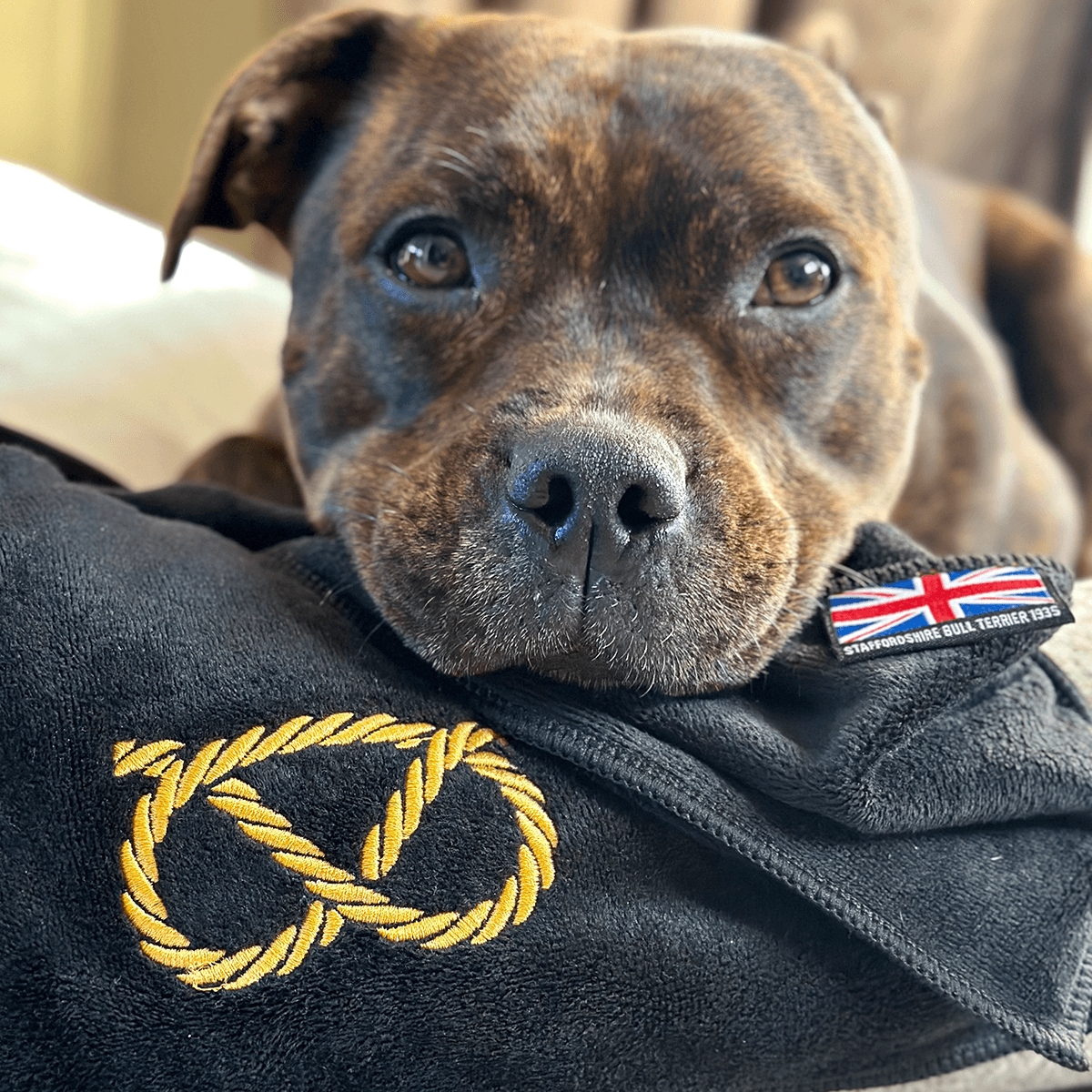 - Stafford Knot Logo: Adorned with the iconic Stafford knot, symbolizing your love for the breed.
