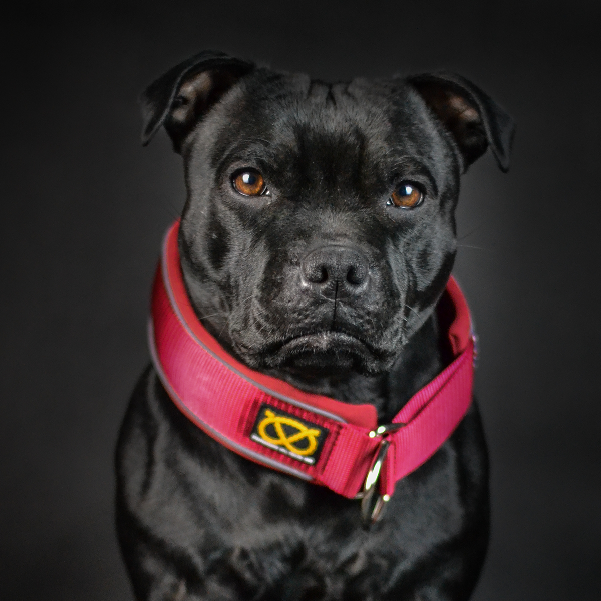 Letar du efter en vadderad, reflekterande och anti-pull krage till en Staffordshire Bull Terrier?