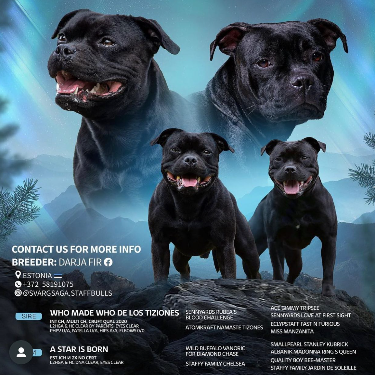 Här hittar du Staffordshire Bull Terrier Breeders i Estland. Om vi har missat någon Staffordshire Bull Terrier-uppfödare får du gärna hjälpa oss och ladda upp dina länkar med knappen nedan.