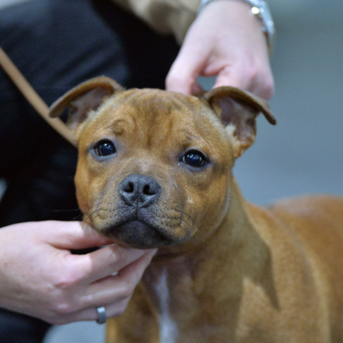 Letar du efter en vadderad, reflekterande och anti-pull krage till en Staffordshire Bull Terrier?