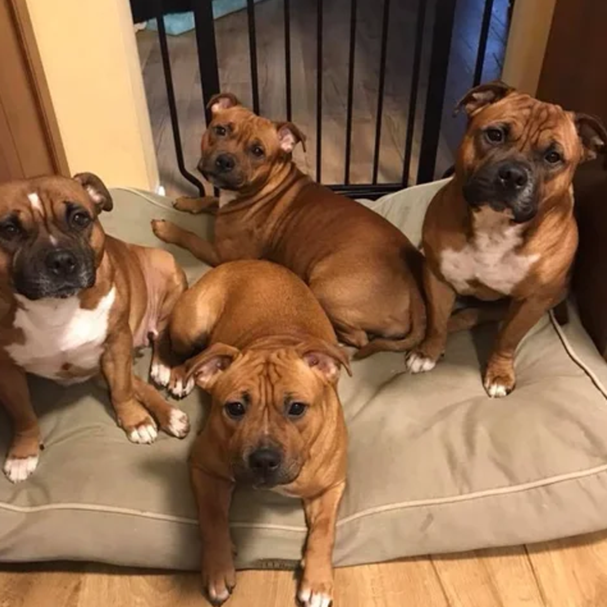 Håll din staffe fräsch under löpet med våra Staffordshire Bullterrier Tikskydd med Hängslen