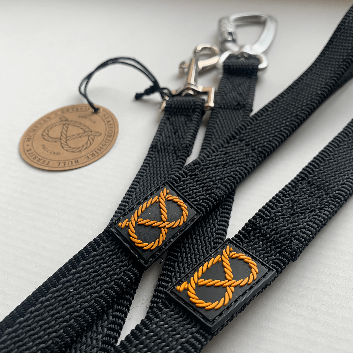 Detta Staffordshire Bullterrier-koppel är speciellt framtaget för en staffes behov, lätt men starkt och högkvalitet. En blandning av nylon och antigild gummi och hållbar 100% rostfri koppelhake. Varje koppel är handgjorda med omsorg för att säkerställa högsta kvalitet.
