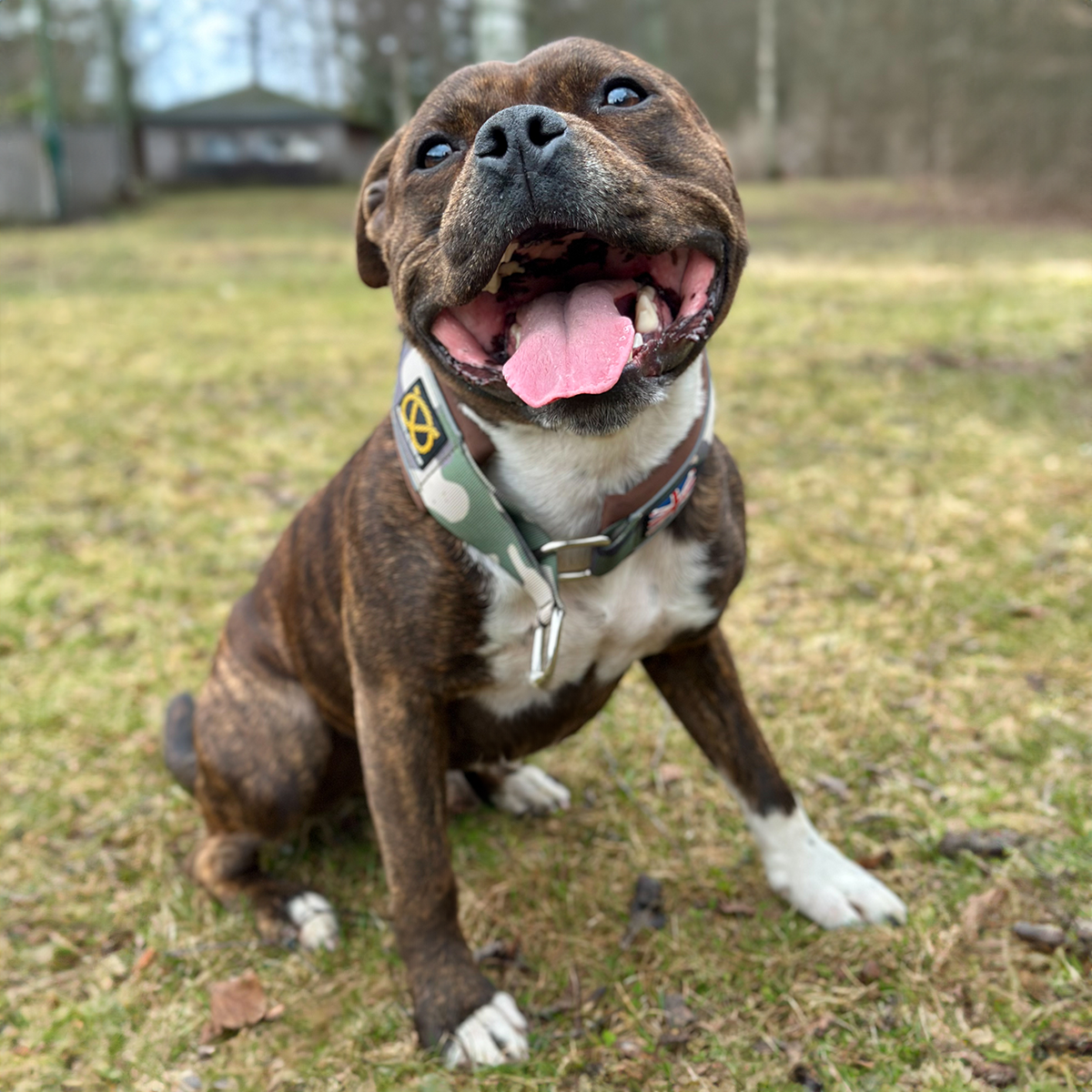 Andra staffar runt om i världen som använder våra Staffordshire Bull Terrier 1935® martingale (halvstryp) halsband: