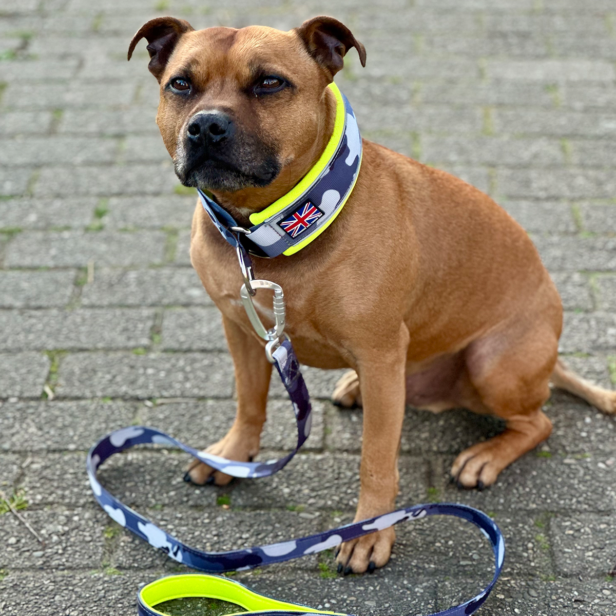 Staffordshire Bull Terrier 1935® Martingale Halsband - Natt Camo & Neongul