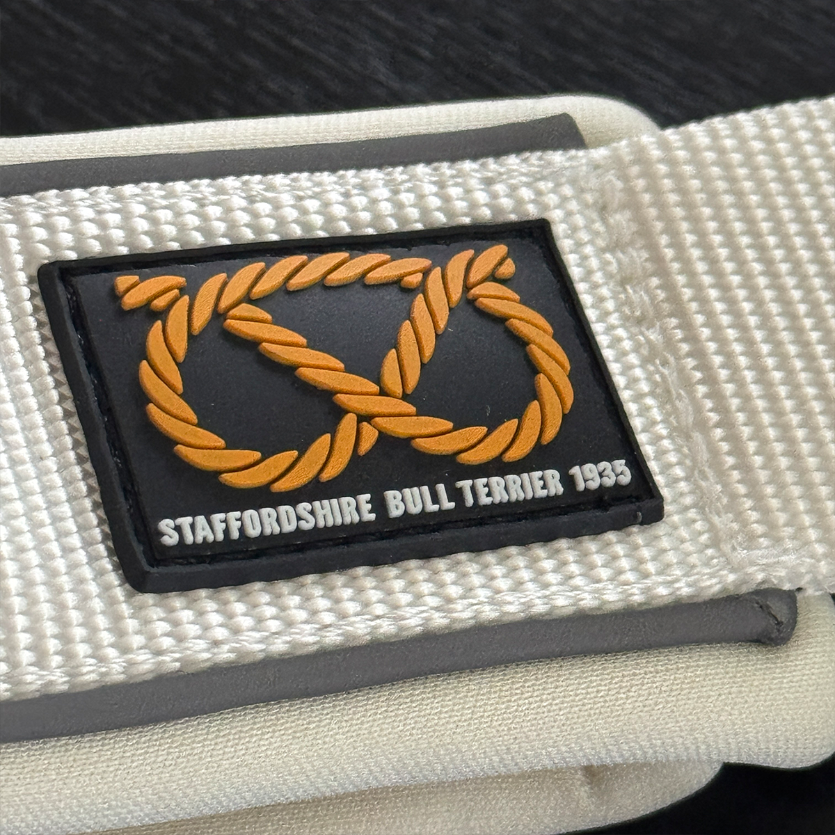 Detta Staffordshire Bullterrier halsband är framtaget med tanke på en Staffordshire Bullterriers unika form och kraft. Varje storlek är anpassad för perfekt passform opch gjord av material av högsta kvalitet. Vi använder slitstarkt nylon och rostfritt stål, kompletterat med mjuk neopren som är skön vaddering flr staffens hals. Neoprenvadderingen torkar även snabbt samt eliminerar oönskade dofter. Vi vill ha användbarhet i fokus, dvs att vårt halsband är lika praktiskt i skogen som på stranden eller under agilityträning.