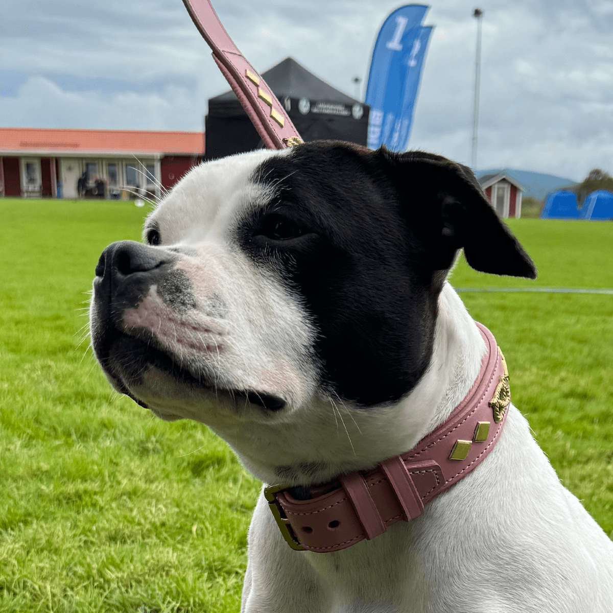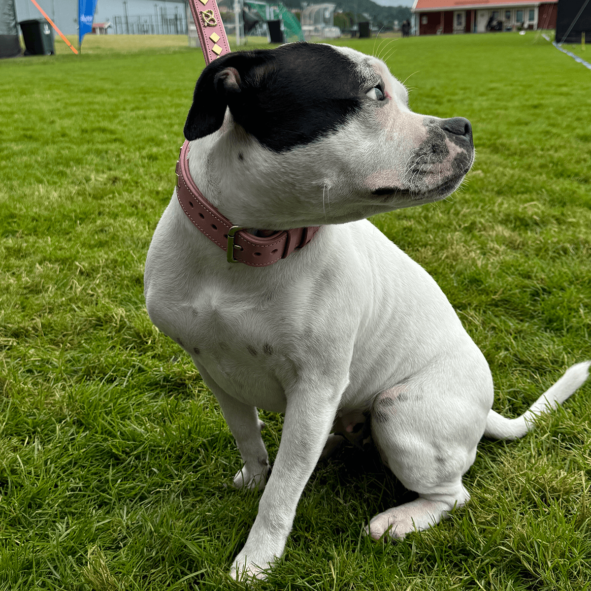 Ge din Staffordshire Bullterrier ett läderhalsband och läderkoppel som återspeglar deras styrka, elegans och historia.