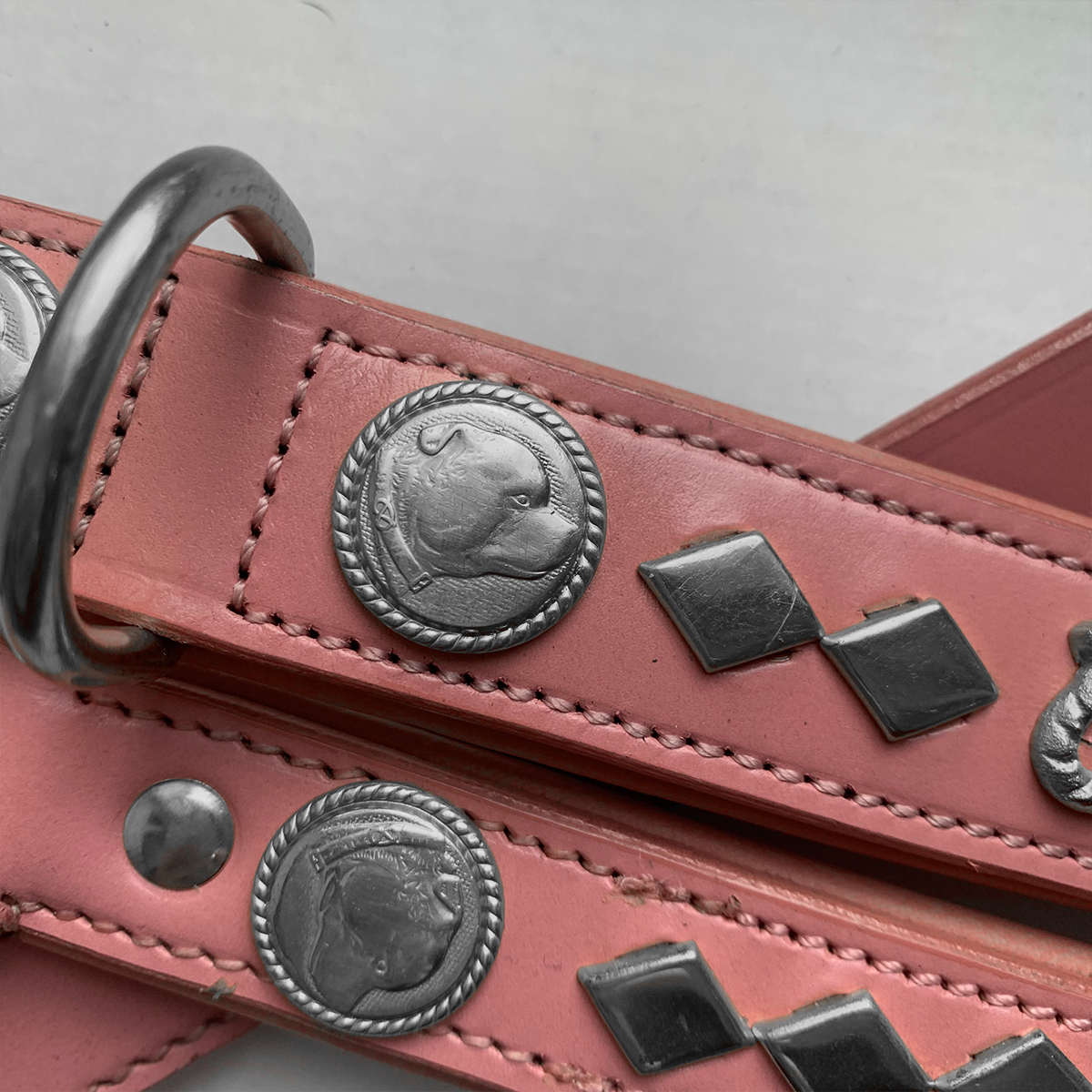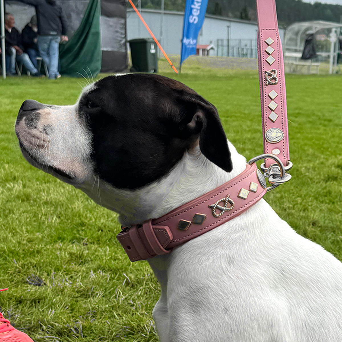 Staffordshire Bull Terrier 1935® Läderhalsband & Koppel Set - Gentleman Jim - Babyrosa/Silver