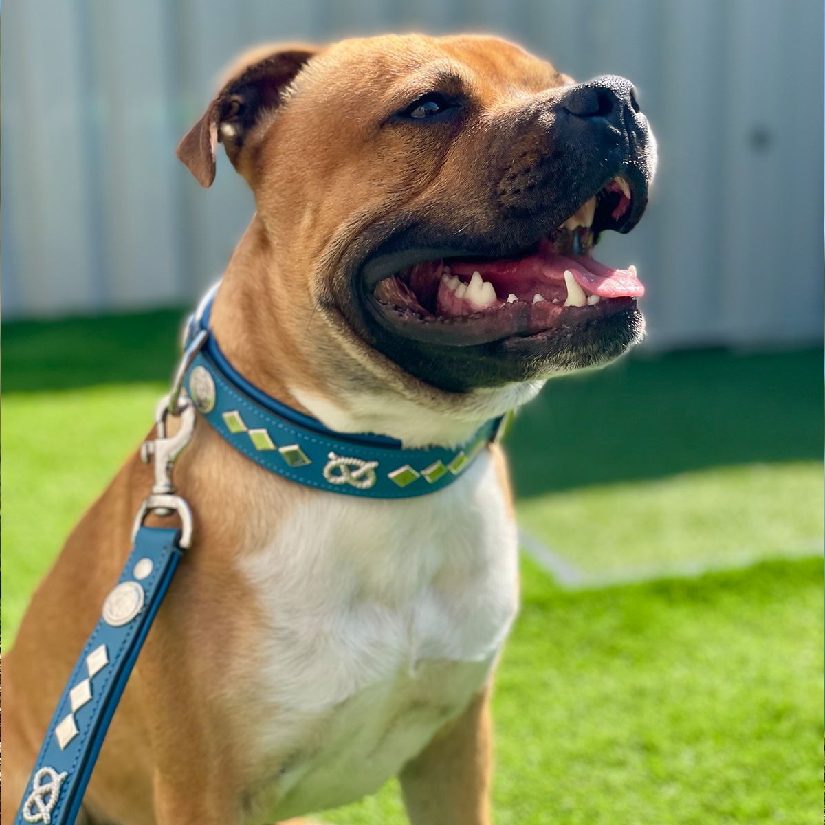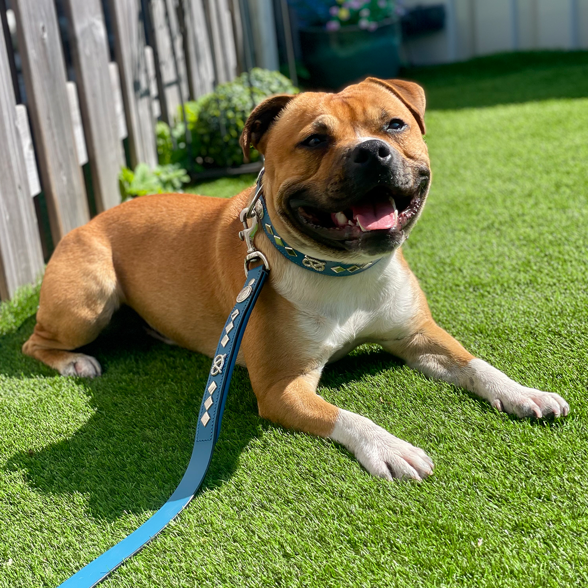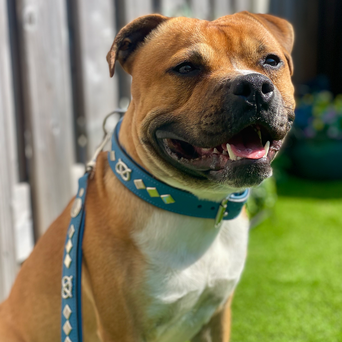 Dessa Staffordshire Bullterrier läderhalsband och läderkoppel är skräddarsydda för våra små robusta grisar, även kallade Staffordshire Bullterrier. Varje läderhalsband är uppkallat efter en framstående Staffordshire Bullterrier champion för att hylla rasens historiska arv.