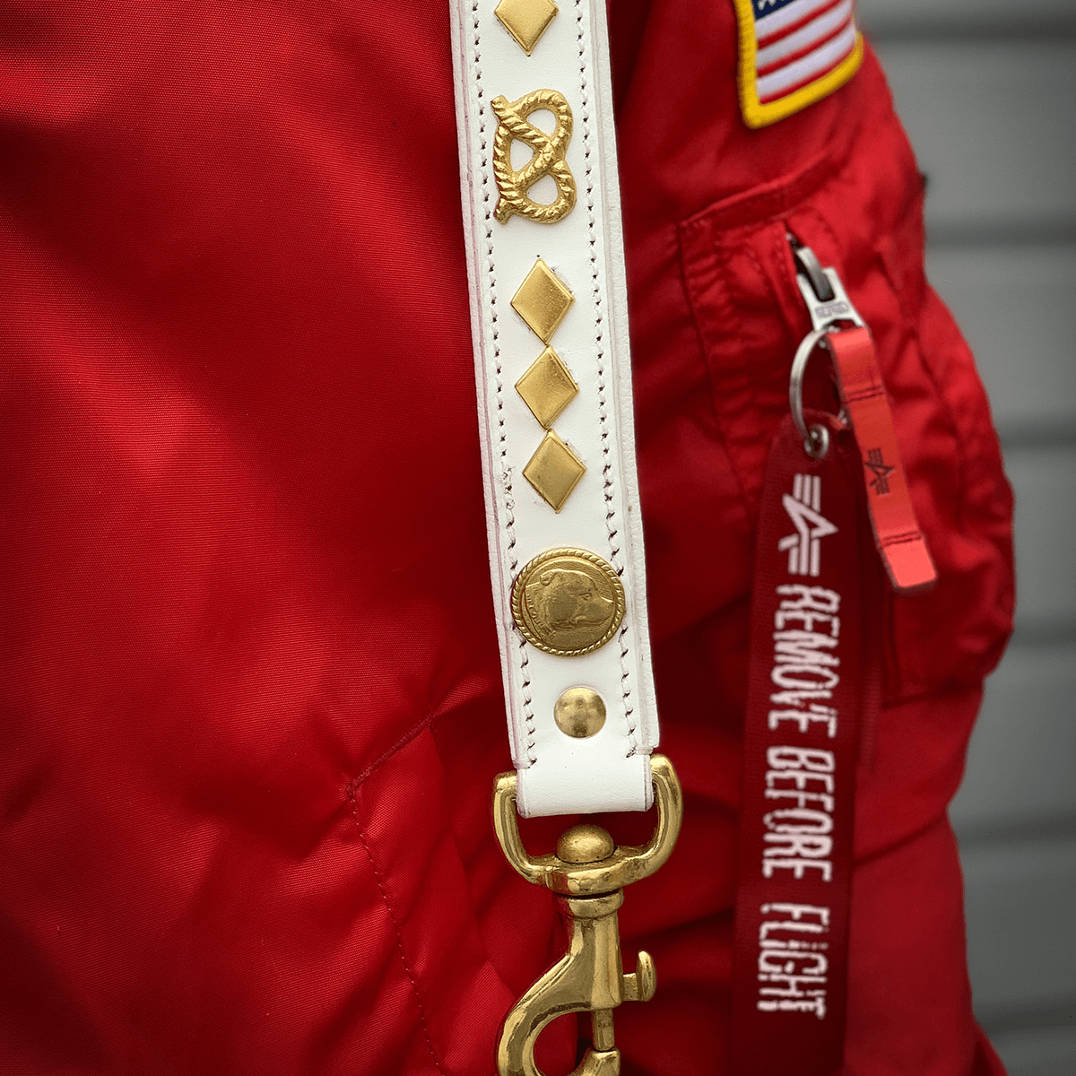 Staffordshire Bull Terrier 1935® Läderhalsband & Koppel Set - Gentleman Jim - Vit/guld