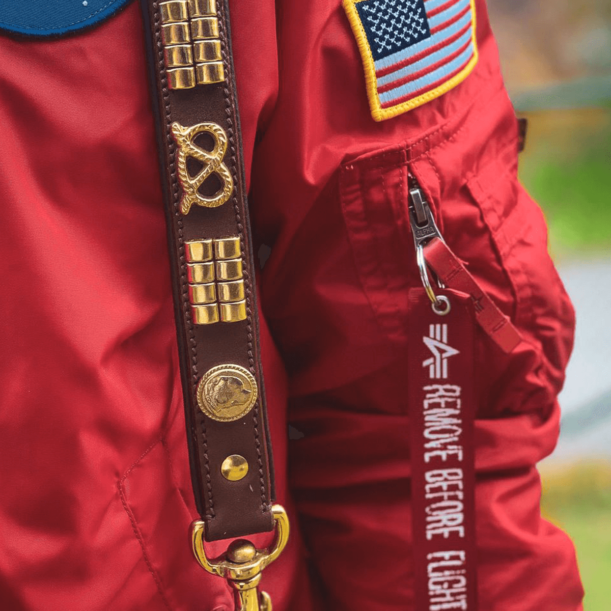 Staffordshire Bull Terrier 1935® Läderhalsband & Koppel Set - Jefferson - Brun/Guld