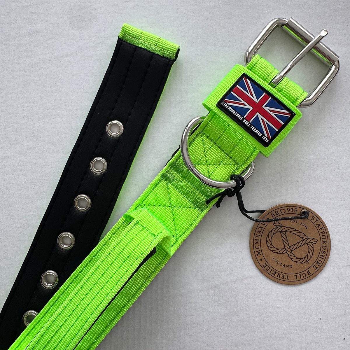 Staffordshire Bull Terrier 1935® Nylonhalsband med handtag - Chevy Edition - Neongrön