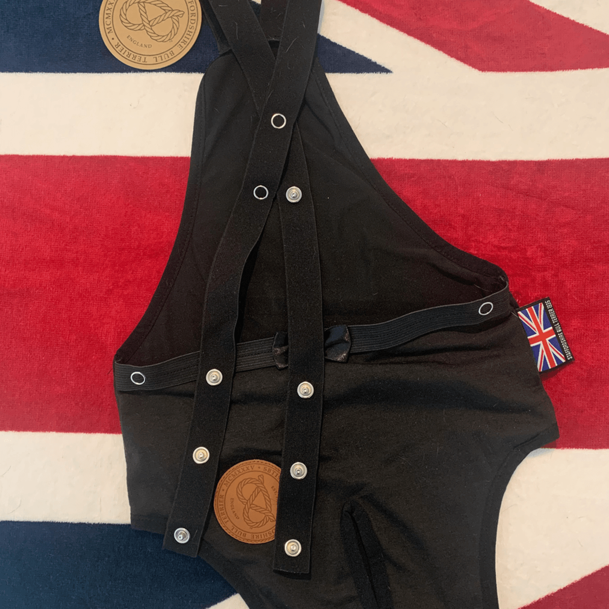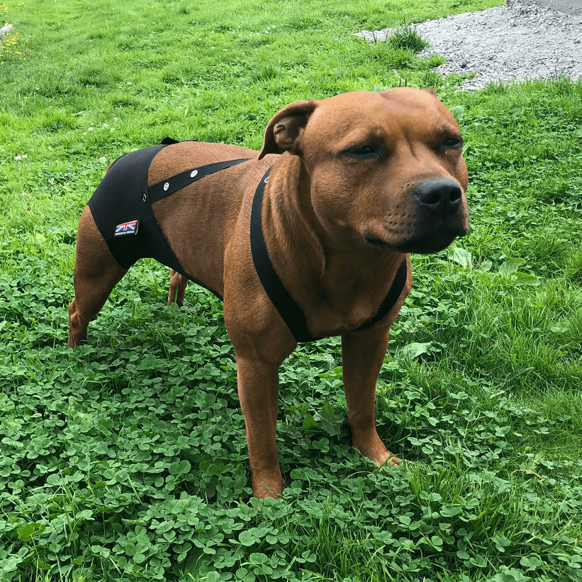S: Dessa staffordshire bullterrier tiktrosor med hängslen är noggrant designade för din staffes välbefinnande under löpet, för hjälp med inkontinensproblem samt efter operation.