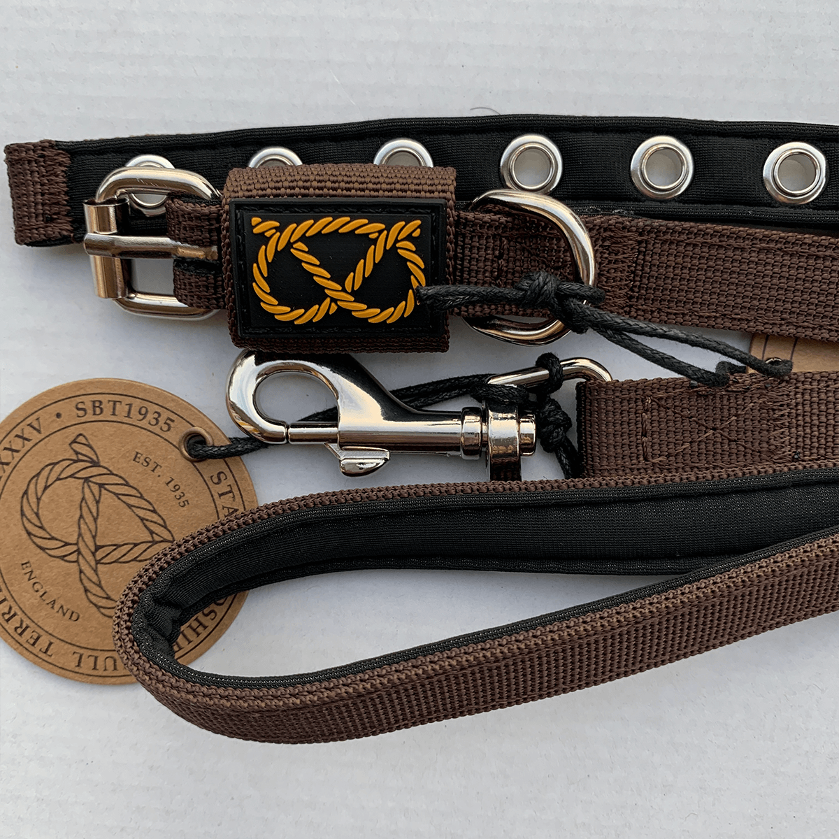 Staffordshire Bull Terrier 1935® Valphalsband & Koppel Set - Choklad